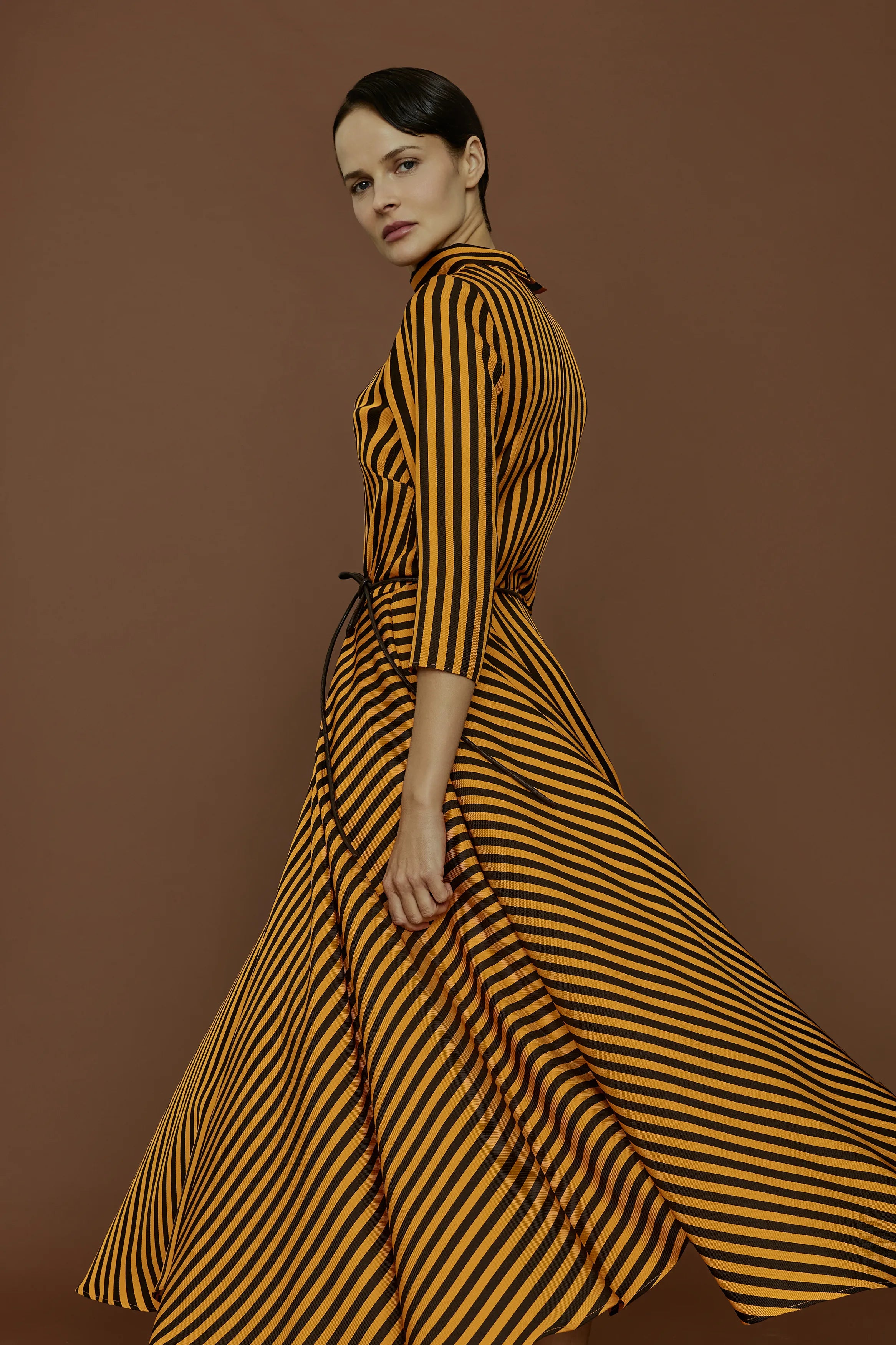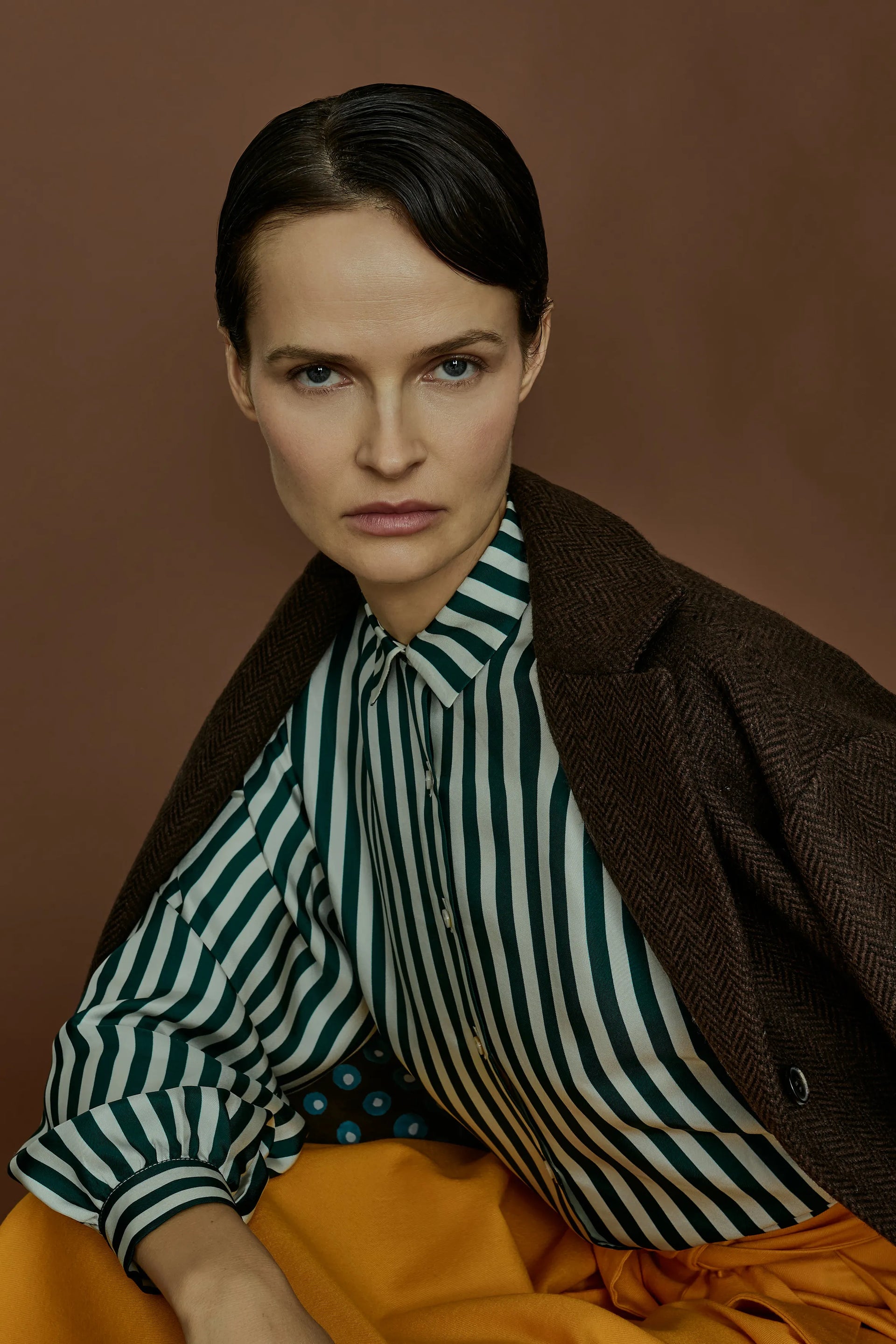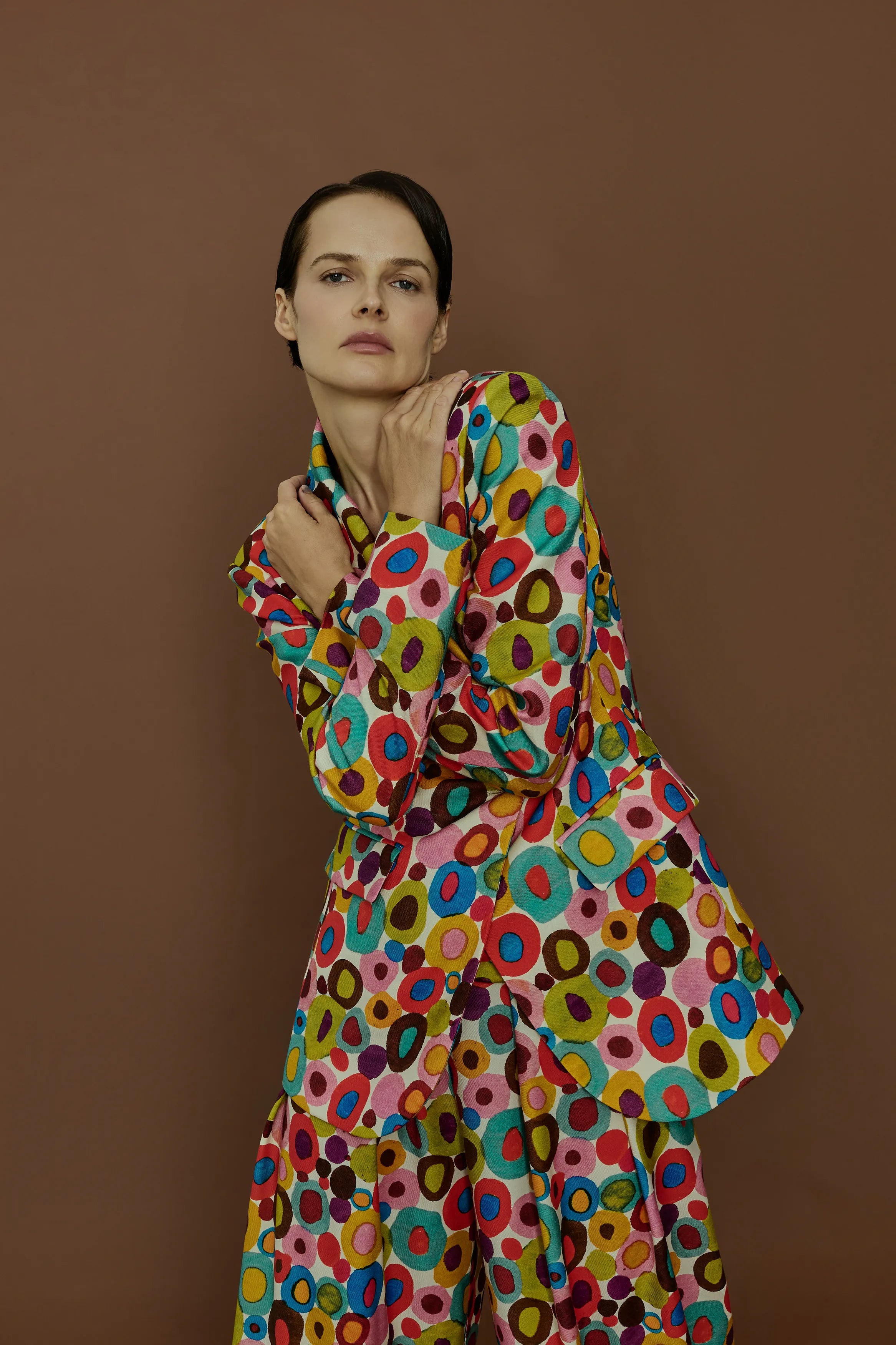 Disegni d’archivio, stampati su fodere e tasche, svelano piccoli segreti, all’esterno righe e pois senza tempo. Colori sobri, un perfetto equilibrio tra classicità e originalità, rigidità e morbidezza, per capi sartoriali che esaltano una donna femminile e gioiosa, che indossa il mondo con naturalezza.