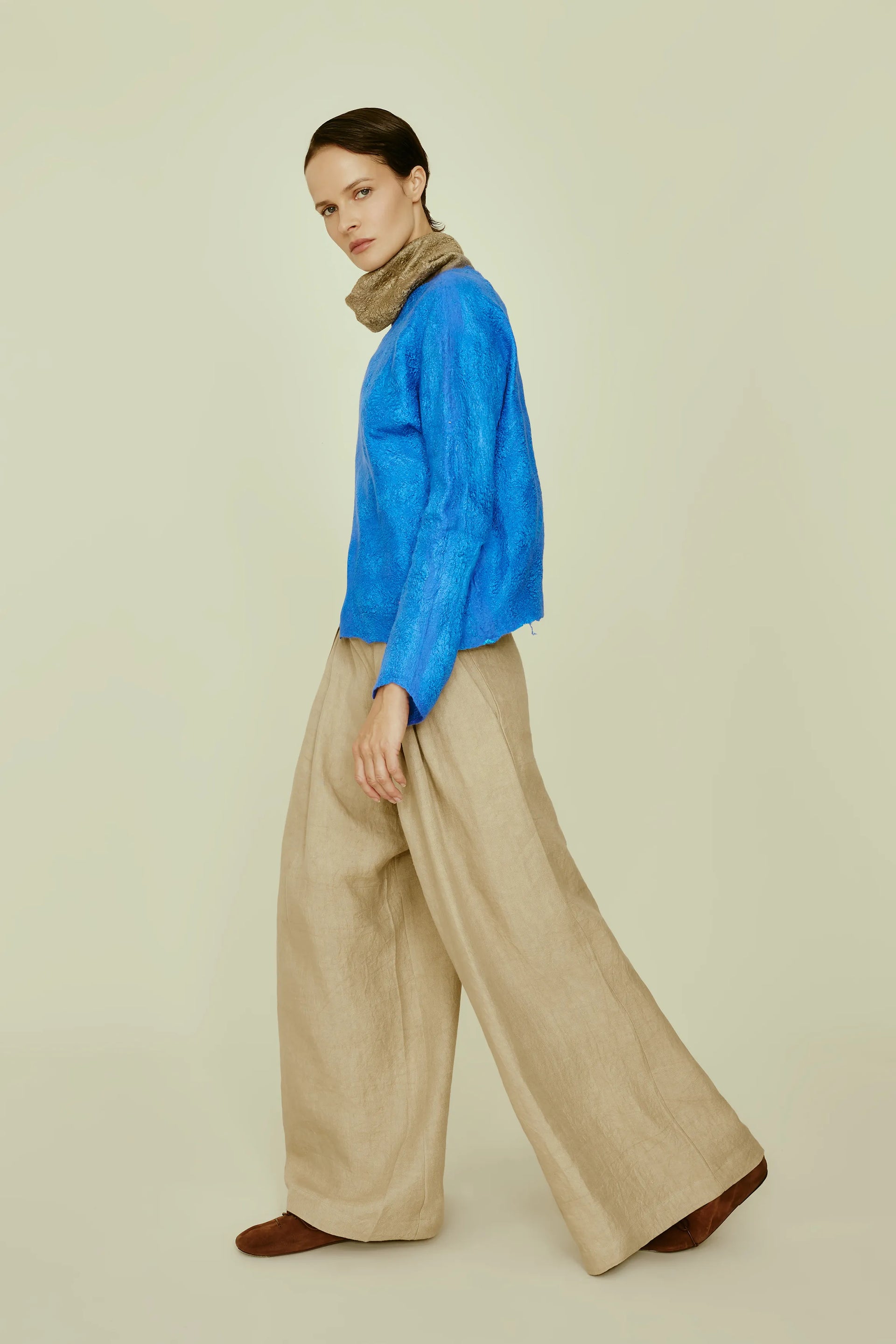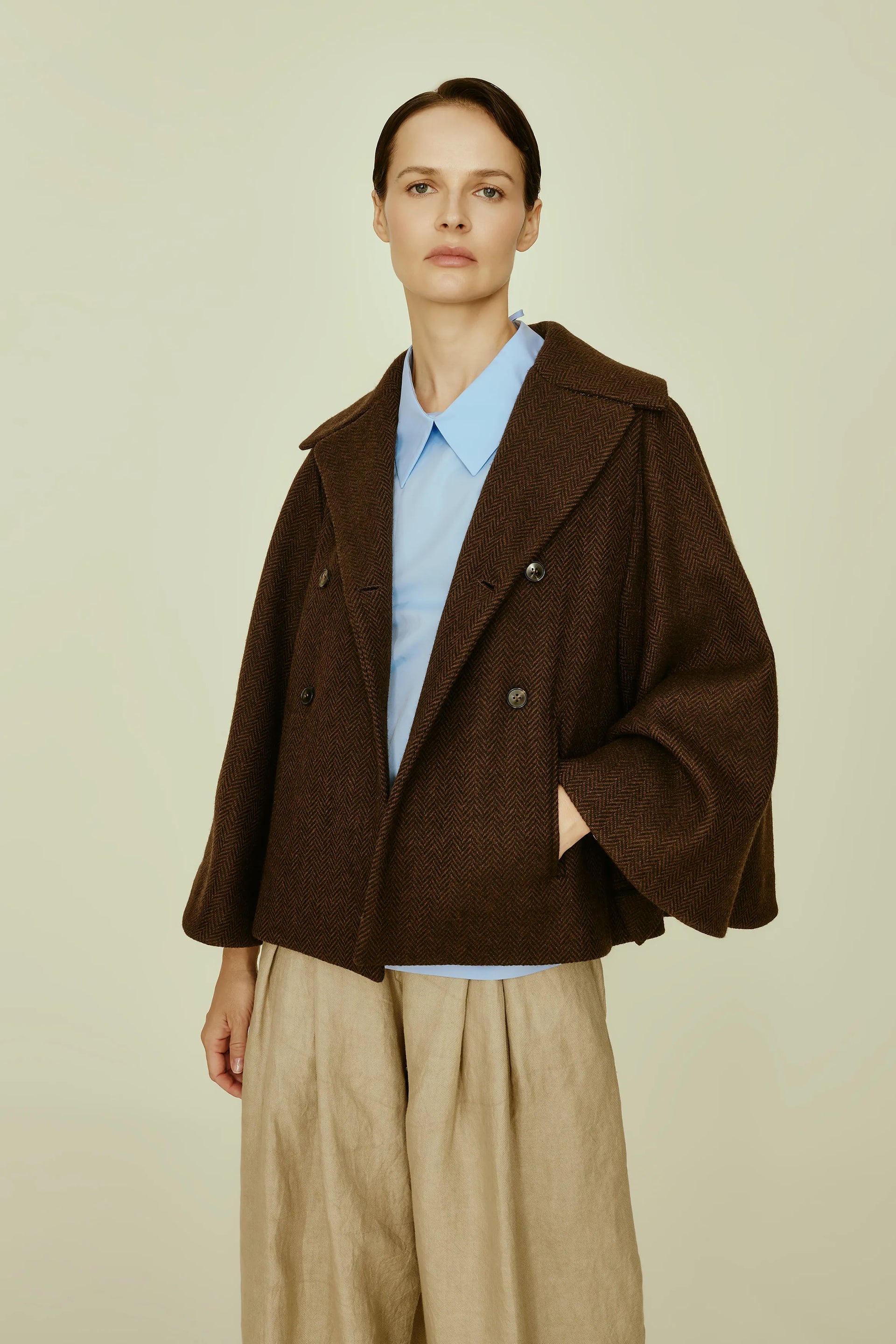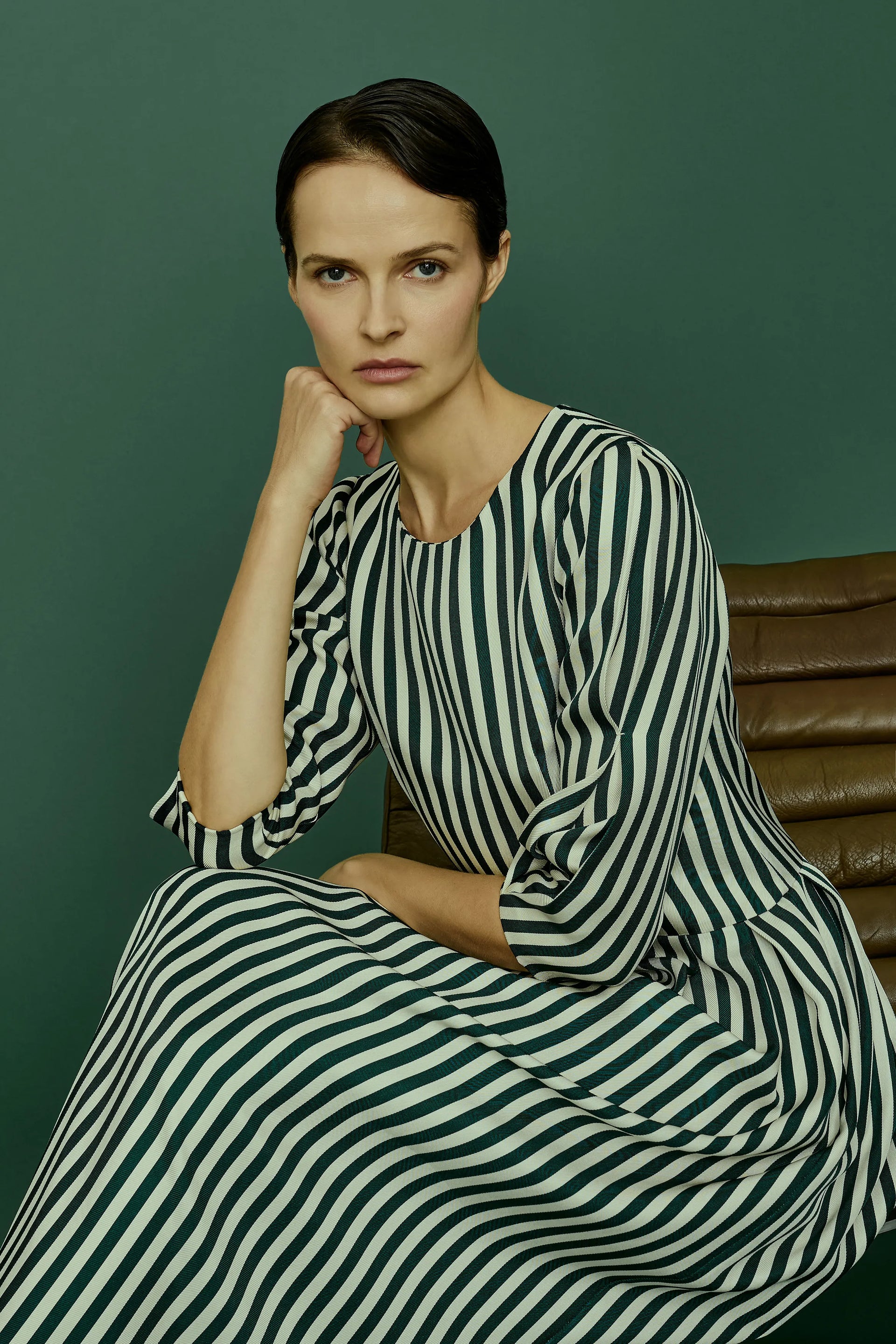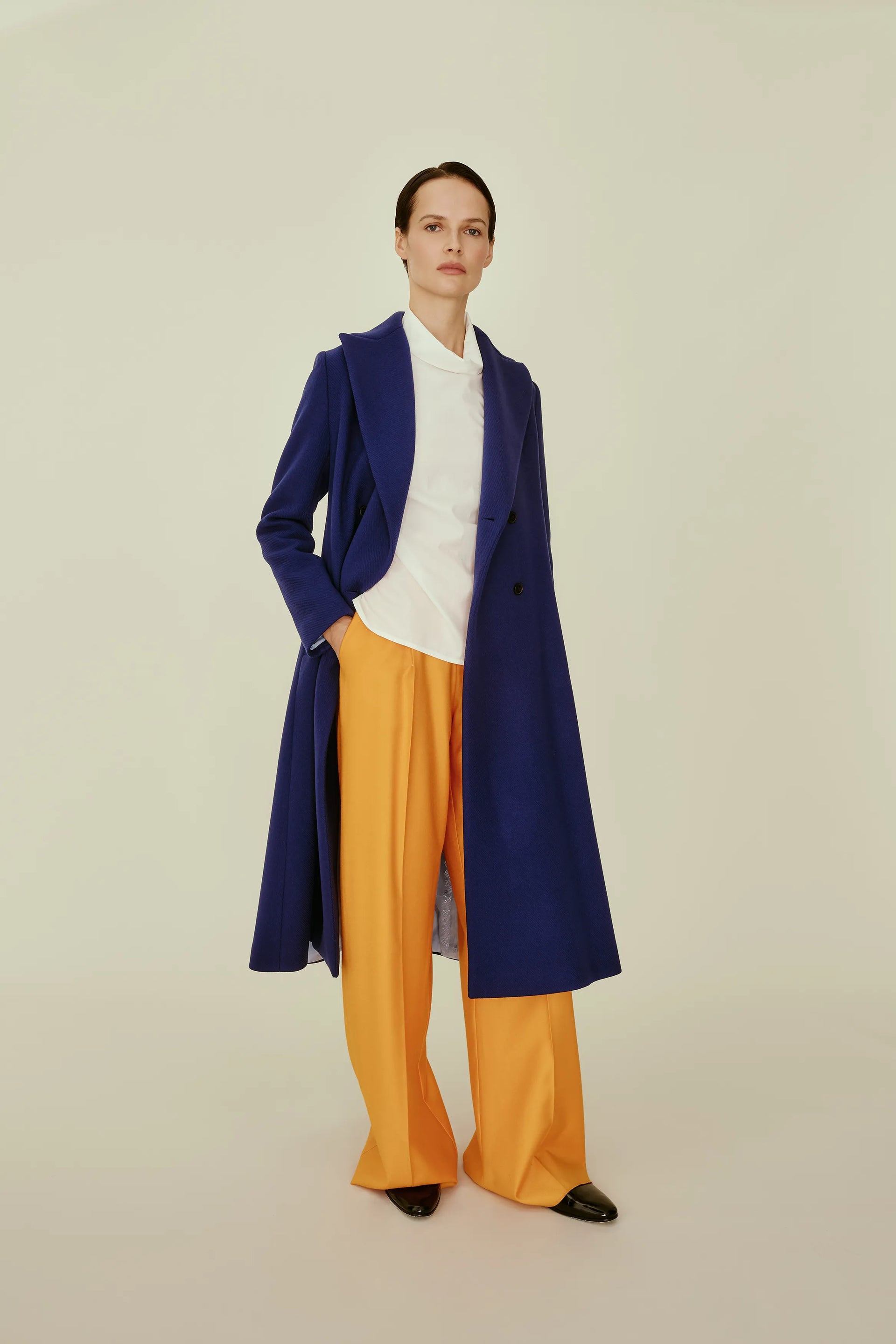 Disegni d’archivio, stampati su fodere e tasche, svelano piccoli segreti, all’esterno righe e pois senza tempo. Colori sobri, un perfetto equilibrio tra classicità e originalità, rigidità e morbidezza, per capi sartoriali che esaltano una donna femminile e gioiosa, che indossa il mondo con naturalezza.